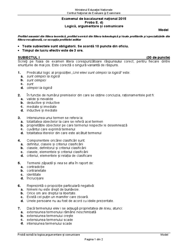 Bac 2015 subiecte logică economie filosofie şi psihologie. D logică argumentare și comunicare barem de evaluare şi de notare model profilul umanist din filiera teoretică profilul servicii din filiera tehnologică şi toate profilurile şi specializările din. Bacalaureat 2015 subiecte logică. Elevii de clasa a xii a termină astfel cele două spătămâni de examene dar nu scapă de emoţii.