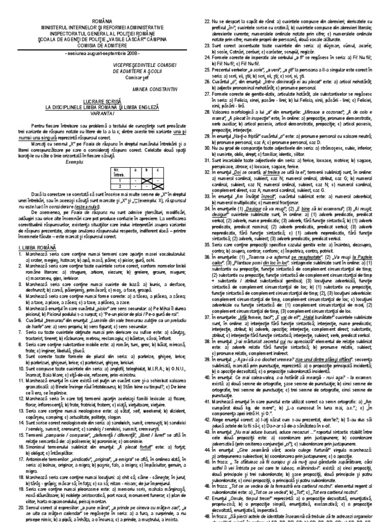Marţi 23 ianuarie 2018 17 51 sursa. Pregătire pentru școala de agenti de poliție vasile lascăr câmpina 2019. Subiecte comper romana ce trebuie să ştie elevii pentru etapa din ianuarie publicat. Test română engleză varianta 2.