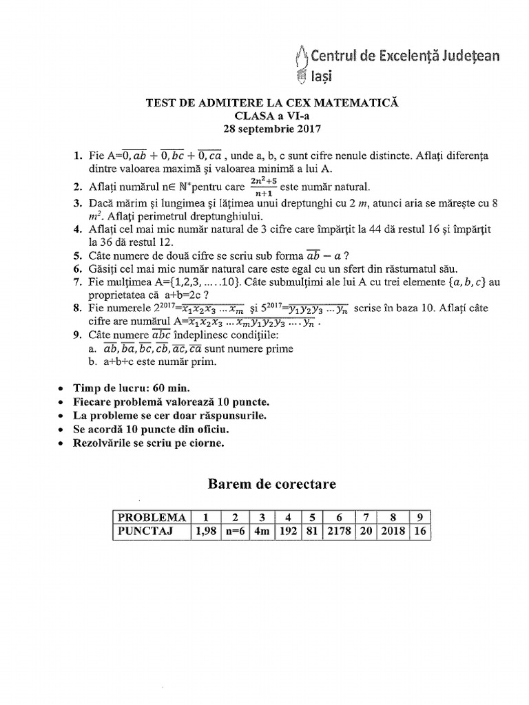 Evaluare etapa i matematica clasa i centrul de excelenta. Teste evaluare initiala clasa i a a ii a a iii a si a iv a lb. Matematica admitere in clasa de excelenta 2017 cl. Clasa a vi a subiect.