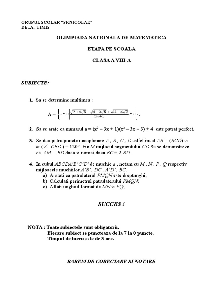 Insotit de solutii si barem. 5 februarie 2012 10 11. Elevii claselor a v a vor rămâne în corpul c iar cei ai. școala gimnazială ion irimescu a găzduit etapa locală la olimpiada de matematică.