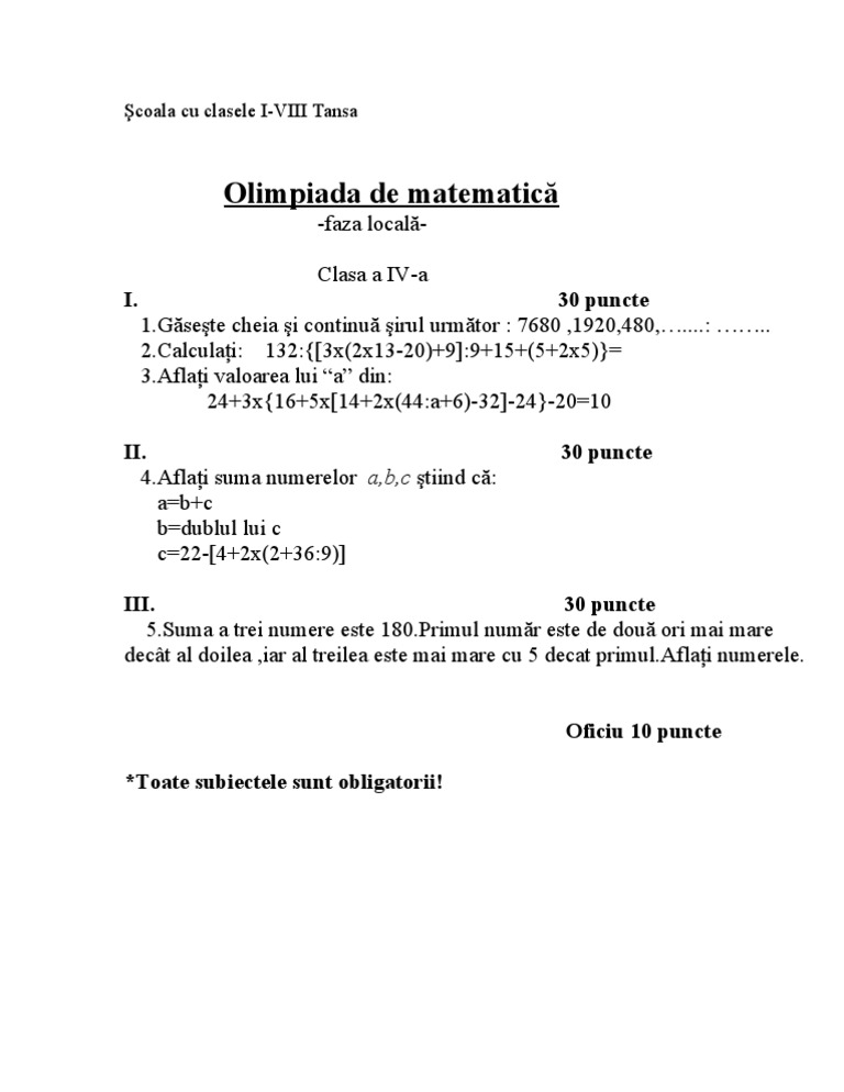 Subiecte Olimpiada Matematica Clasa 5