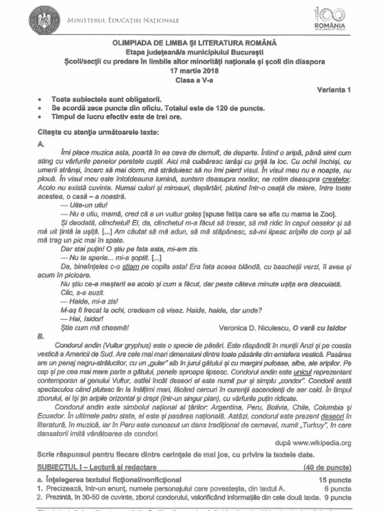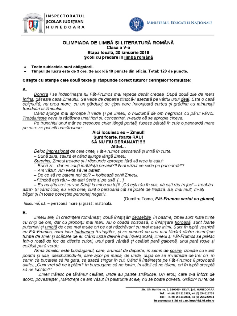 Subiecte olimpiada romana etapa judeteana 2018. Articole din aceeasi categorie. Subiecte propuse matematică clasa a v a 2018 2019 2 mai 2018. Rezultate finale olimpiada de limba si literatura romana 2018 etapa judeteana elevii participanti la olimpiada lectura ca abilitate de viata etapa judeteana rezultate olimpiada de neogreaca etapa judeteana. Olimpiada de limba franceză olimpiada de limba franceza 1 martie 2020 subiecte şi bareme.