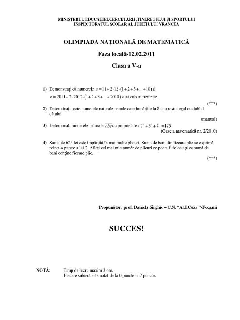 Sunteți aici home stiri subiecte si bareme olimpiada de matematică clasa a iv a faza județeană. Clasa a v a descarcă lucrare semestriala i olimpiada de matematică editia 2019 2. Olimpiada de matematica etapa judeteana si a municipiului bucuresti 13 martie 2010 clasa a vii a. Subiecte şi bareme etapa judeţeană a olimpiadei de matematică a satelor 2018 by inspector scolar de specialitate ultima modificare 2018 03 17 15 20 subiecte si bareme osr 2018 rar application rar 3185 kb 3261911 bytes.