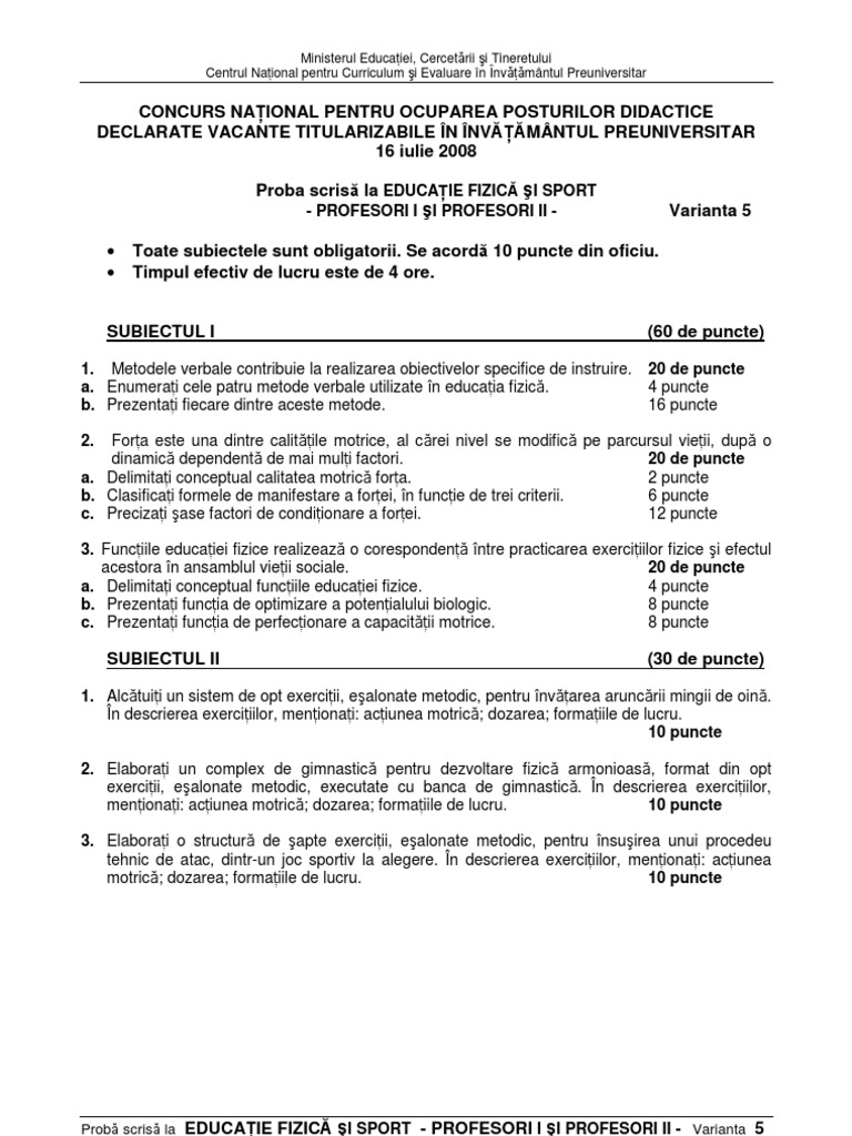 Subiecte Titularizare Educatie Fizica Si Sport 2016