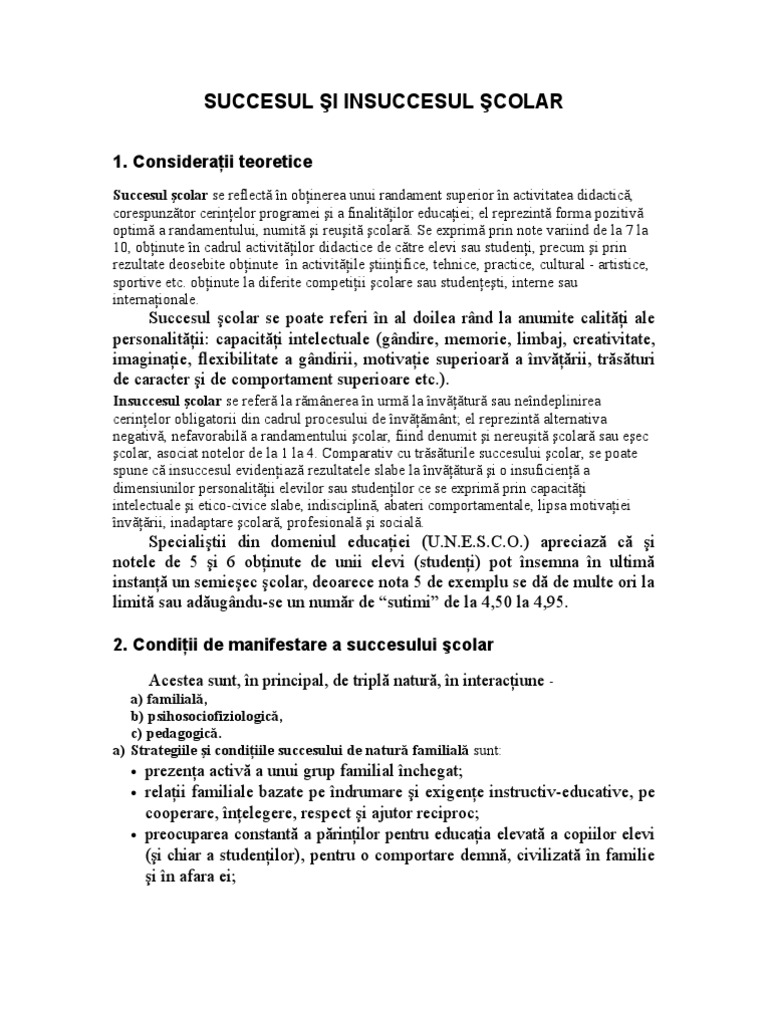 Succesul si insuccesul scolar referat. Insuccesul scolar se manifesta sub doua aspecte. Romana 1189 geografie 503 istorie 689 engleza 316 diverse 511 chimie. Download gratuit succesul si insuccesul scolar. Teoriile din acest domeniu descriu felul în care omul construieste explicatia cu privire la experientele sale.