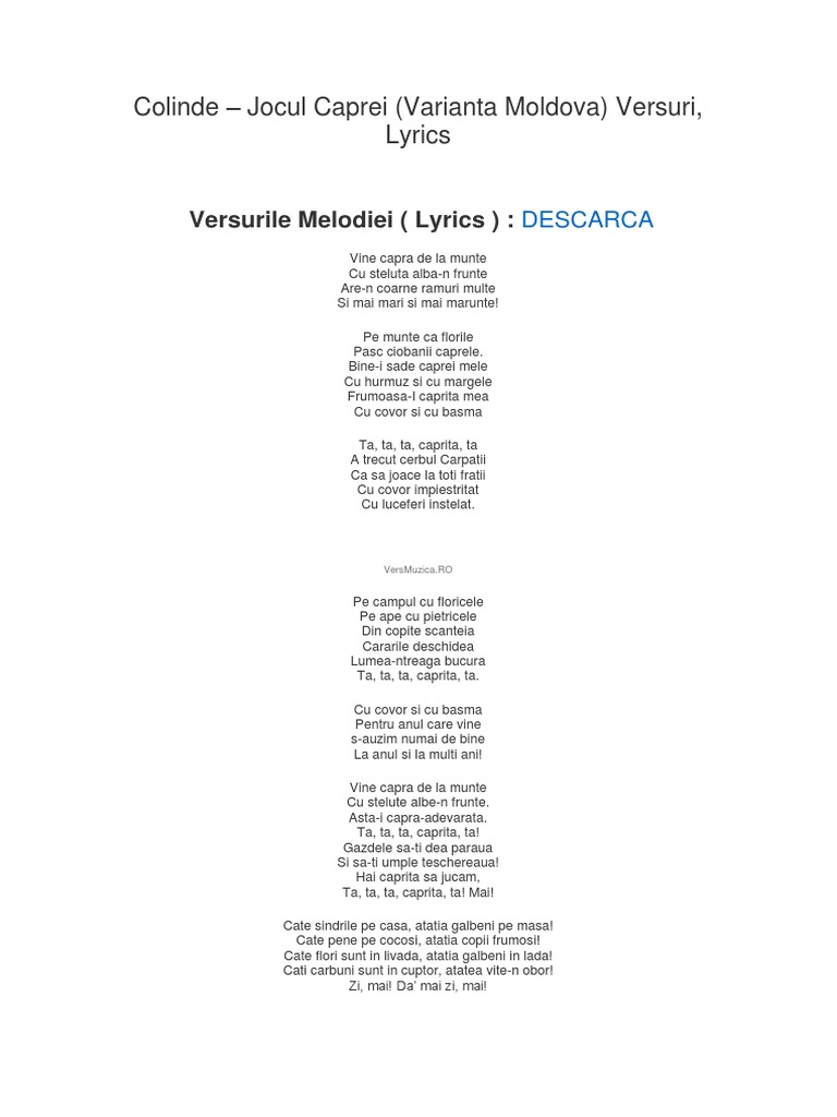Versuri capra de anul nou 2 vine capra de la munte cu stelute albe n frunte.