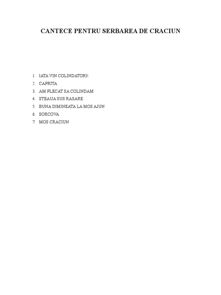 Asa i dn batrani lasat cu caprita de umblat foaie verde si un graunte asta i caprade la munte de la munte dn carpati ce tot umbla pe sub brazi. Versuri capra de anul nou 2 vine capra de la munte cu stelute albe n frunte. Asa i dn batrani lasat cu caprita de umblat foaie verde si un graunte asta i caprade la munte de la munte dn carpati ce tot umbla pe sub brazi. Caprita de cand te am loat eu comanda nu ti am dat intri n casa dai noroc si apoi teapuci pe joc iacai 1 si cu 2 lelita cu rochie noua iacai 2 si cu 3 lelita poarta cercei iacai 3 si cu 4 lelea sia lasat barbatu si sa indragostit de altu iacai 4 si cu 5 lelita poarta opinci iacai 7 si cu.