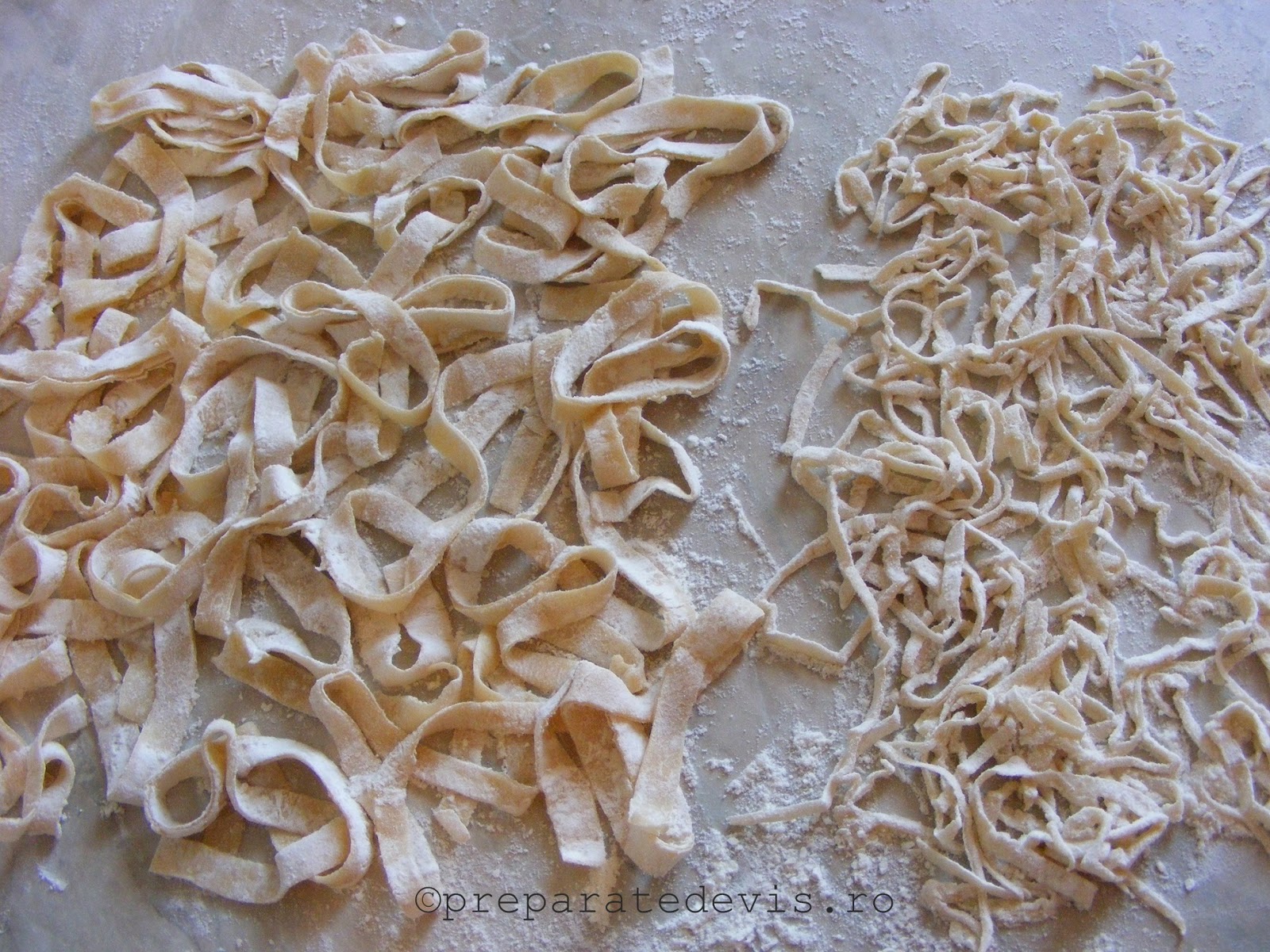 Taitei de casa cu ou reteta. Taitei de casa cea mai usoara reteta taiteii de casa pot fi folositi pentru supe ciorbe diverse mancaruri budinci si chiar ca desert sub forma de taitei cu lapte. Mai jos gasesti cateva retete de taitei delicioase pe care le poti prepara oricand acasa intr un timp foarte scurt si cu efort minim. Dupa uscare se pot pastra foarte bine intr o cutie de tabla sau carton captusita cu hartie alba. Oul se bate cu apa si apoi se adauga cam 3 4 trei sferturi din faina.