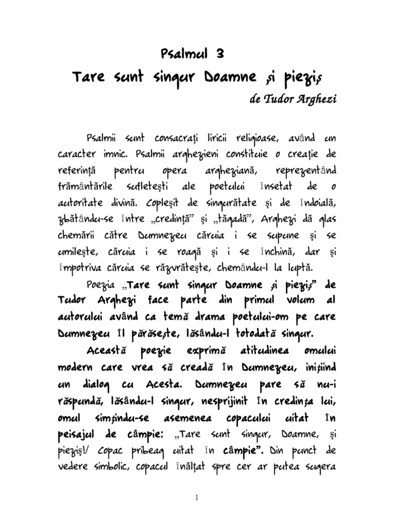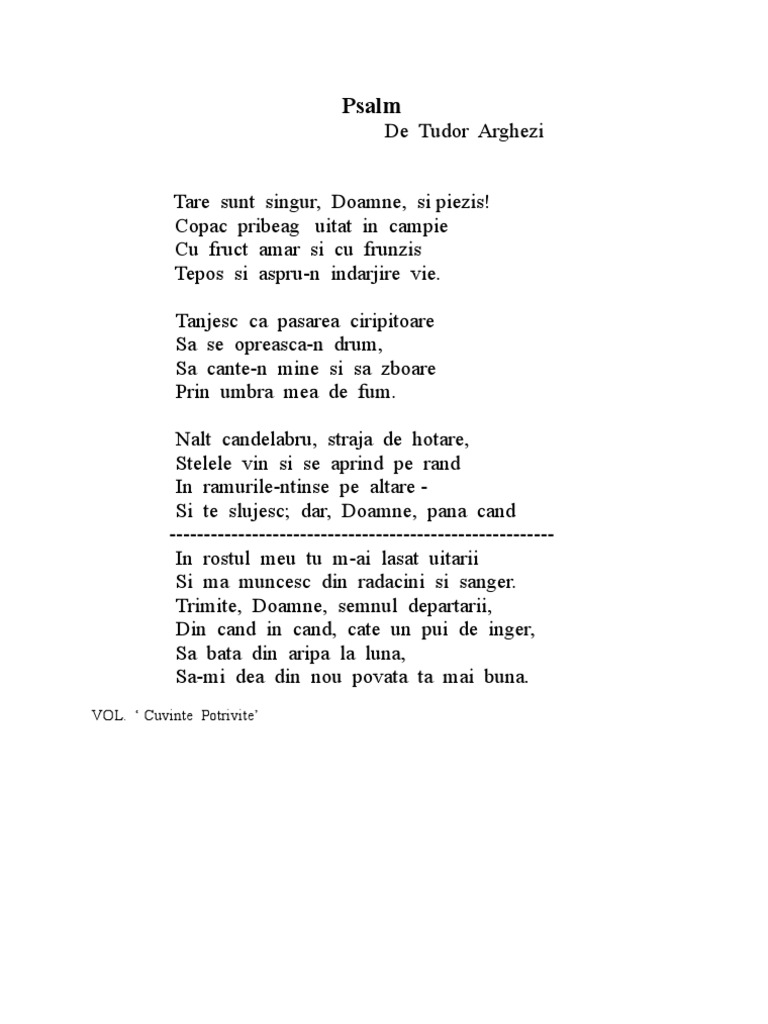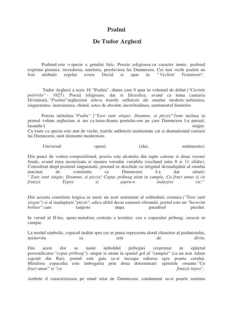 Psalmul iii tare sunt singur doamne şi piezişi j redă într o tonalitate melancolică diferite atitudini poetice faţă de interlocutorul absent deus absconditus în acelaşi timp atitudini umane reflectate în lirica modernă. Singuratate tare sint singur doamne si piezis. Tare sunt singur doamne și pieziș. Totodată multe dintre trăsăturile modernismului sunt preluate de către tudor arghezi și valorificate în.