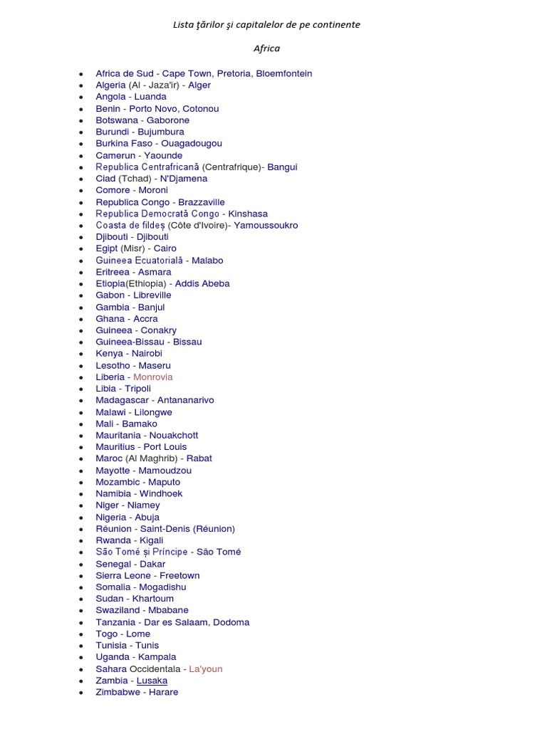El salvador san salvador grenada sfântul george. Tarile si capitalele care fac parte din. Algeria alger angola luanda benin porto novo botswana gaborone burkina faso ouagadougou burundi bujumbura camerun yaounde. Albania tirana andora andora la vella armenia erevan austria viena azerbaijan baku.