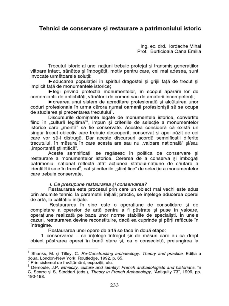 7 e 10 11 2000 boldura oliviu bucureşti tel. Procedura de lucru se referă la activitatea de restaurare a bunurilor culturale din expoziţia etnografică de natura arhitecturii vernaculare. Aceste semnificaţii se regăsesc în politica de conservare şi restaurare a monumentelor istorice. Institutul cultural român mihai eminescu la chișinău și facultatea de arhitectură și urbanism de la universitatea tehnică din moldova în colaborare cu uniunea arhitecților din moldova și agenția de inspectare și restaurare a monumentelor din moldova organizează colocviul internațional tehnici și materiale pentru restaurarea monumentelor de arhitectură.
