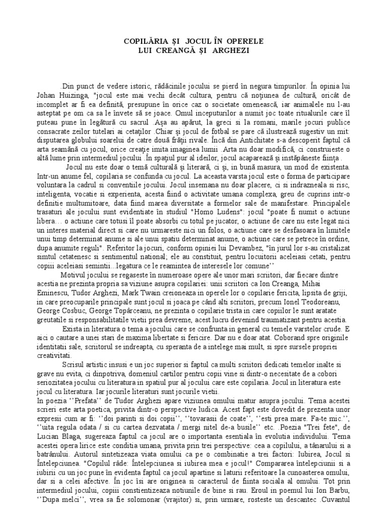 Tema jocului in amintiri din copilarie. Vizitați cel puțin 5 dintre cele 10 pagini recomandate pe tema joc și joacă se dă linkul la un webmix public symbaloo pregătit de profesor care cuprinde linkuri la pagini web și la filme de pe youtube care transpun secvențe din amintiri din copilărie de ion creangă apoi realizați o sinteză de un paragraf în care să argumentați rolul acestei teme în literatură și. Date biografice şi bibliografice despre autor. Amintiri din copilărie fișă de lectură titlul operei. Tema jocului în opera lui ion creangă.