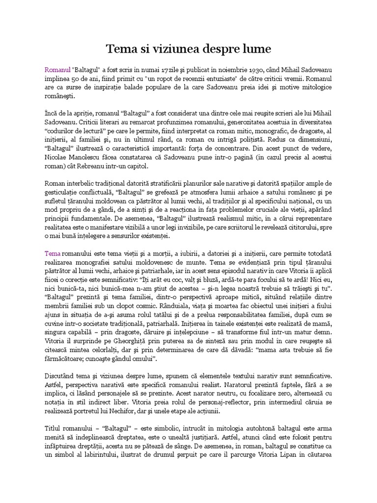 Viziunea despre lume infatisata in acest roman redus ca dimensiuni dar epopeic ca forta de evocare nu face exceptie de la ampla perspectiva pe care o ofera sadoveanu in toata creatia lui echivalentele dintre ordinea cosmica si cea umana sunt concentrate intr o lege universala pe care autorul si personajele sale o numesc randuiala uitarea ordinii lumii este una dintre marile primejdii ale. Moara cu noroc de ioan slavici. Elemente ale viziunii clasice sunt echilibrul compozitional simetria si armonia. în cazul nostru poetul este un reprezentant social ce.