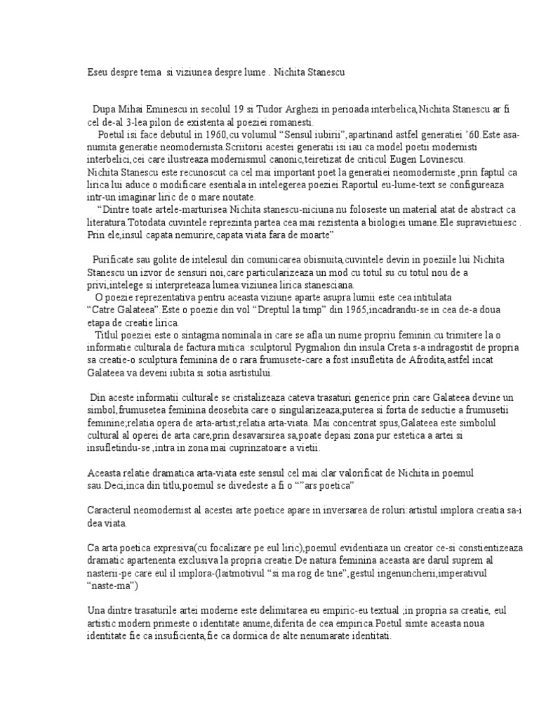 Tema si viziunea despre lume. Alexandru lapusneanul este prima nuvela istorica din literatura romana a fost publicata in primul numar al revistei dacia literara iasi 1840. Tema și viziunea despre lume în poezia testament este poezia ce deschide volumul cuvinte potrivite publicat de către arghezi în 1927. Unul dintre cei patru mari clasici ai literaturii române ioan slavici deschide în proza noastră drumul analizei psihologice și sociale. In lacustra viziunea despre lume surprinde o existenta fara iesire nemetafizica intrucat textul hiperbolizeaza starea de singuratate obsesia unei depline izolari si presimtirea dezagregarii a neantului.