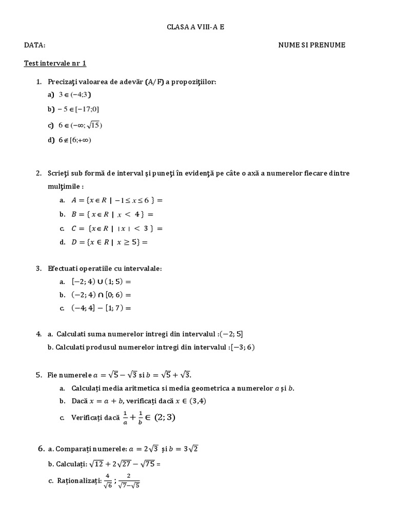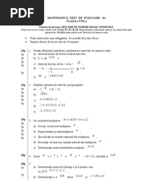 Test clasa a 8 a matematica intervale. 17 aprilie 2005 23 14. Intervale pentru clasa a viii a autentifică te. Test tip examen 9. Olm 2020 clasa a vii a bistrita nasaud.