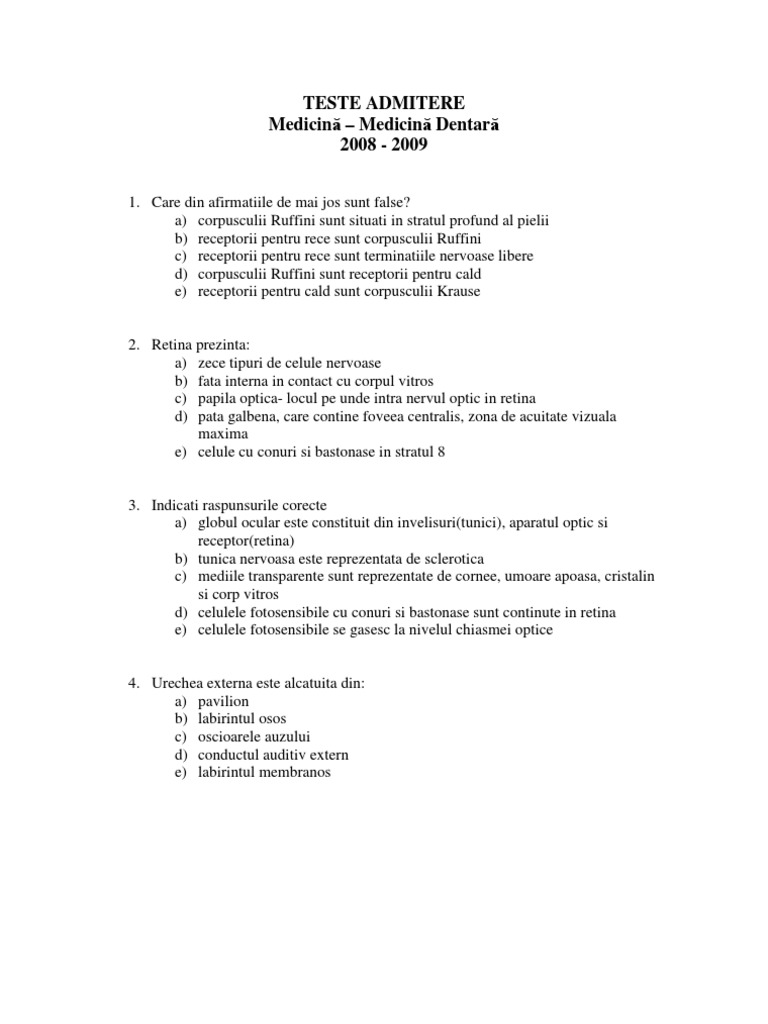 Teste Grila Admitere Medicina