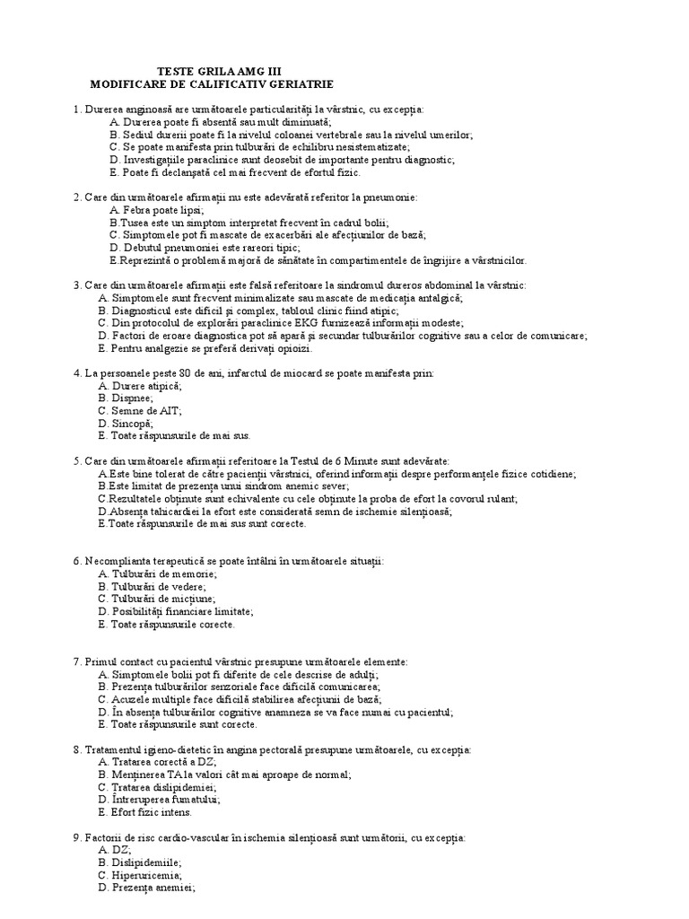 Se stranguleaza foarte frecvent e. Este mai fregvent unilaterala d. Pentru sedimentarea și fixarea informațiilor de nursing pagina de nursing pune la dispoziție teste de verificare sau quiz uri. Teste grila amg 2020.