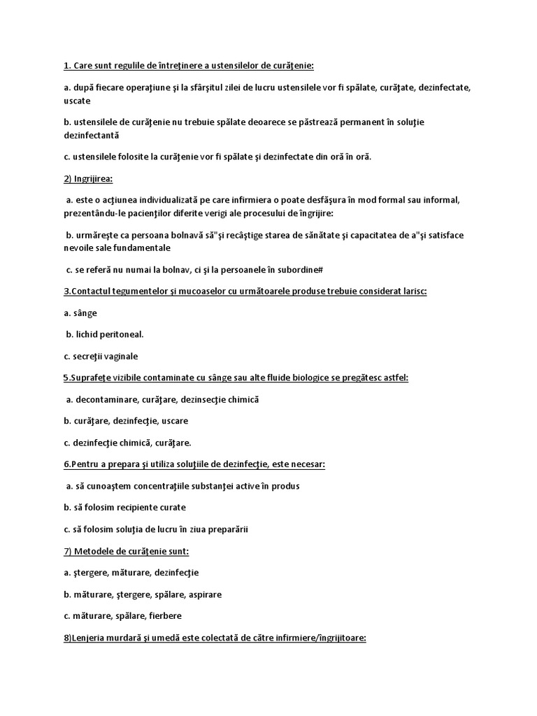 Pentru prevenirea complicatiilor pulmonare ce pot aparea dupa interventiile chirurgicale pe tubul digestiv se iau urmatoarele masuri cu pacientul opera. Teste grila asistenti medicali cu raspunsuri 2020. Astfel metoda de învățare este completă pentru orice elev student asistent medical generalist. Care sunt regulile de întreţinere a ustensilelor de curăţenie.