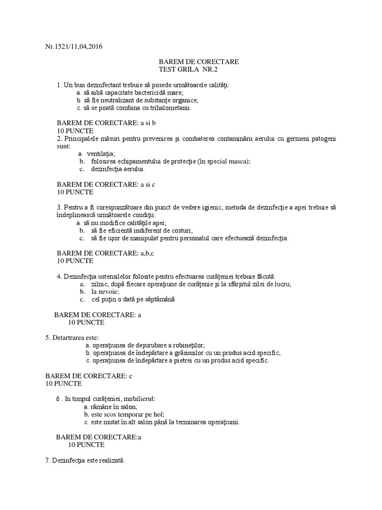Nr 1521 11 04 2016 barem de corectare test grila nr.