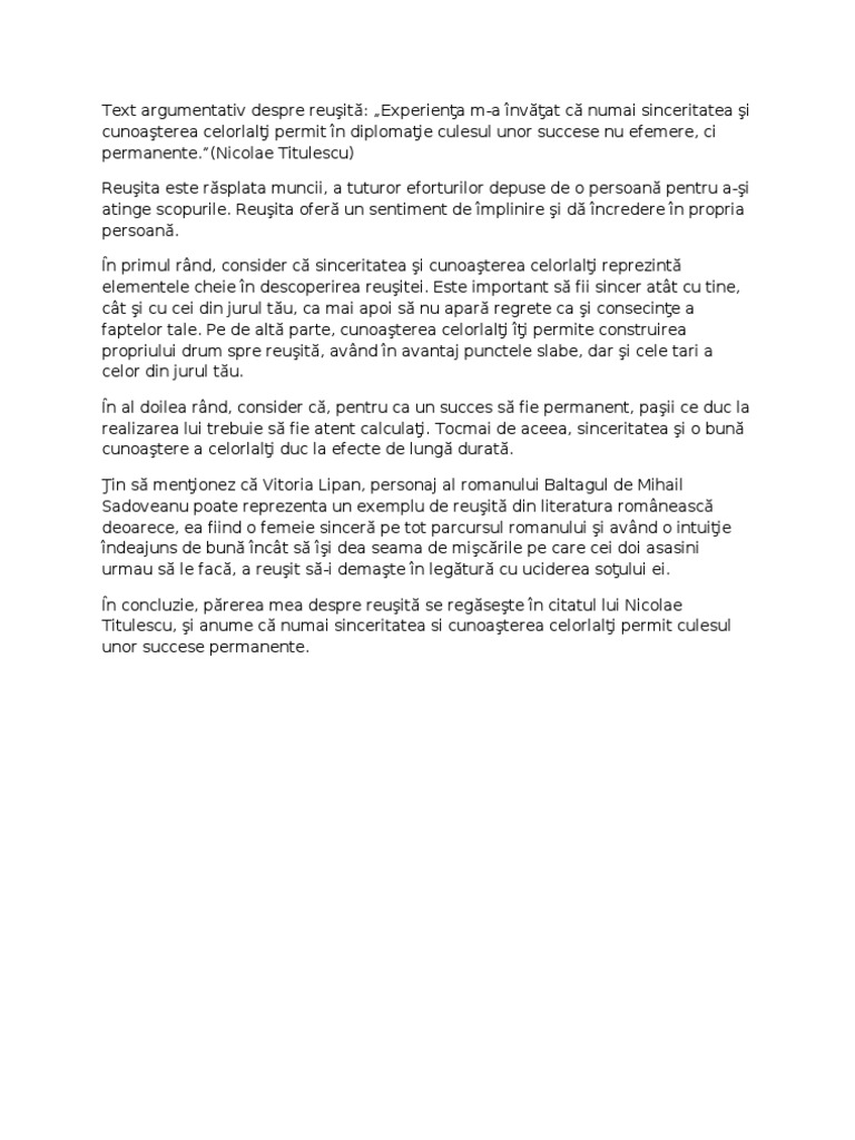Text Argumentativ Despre Ambitie