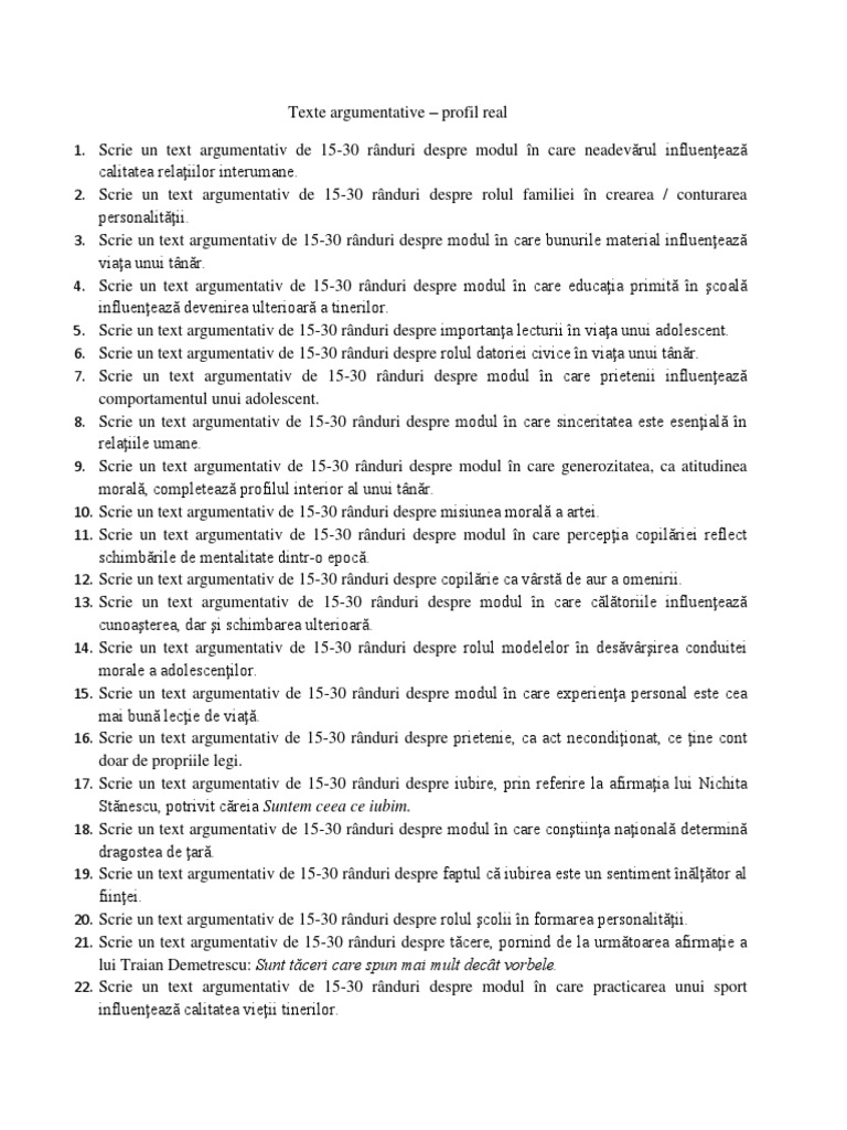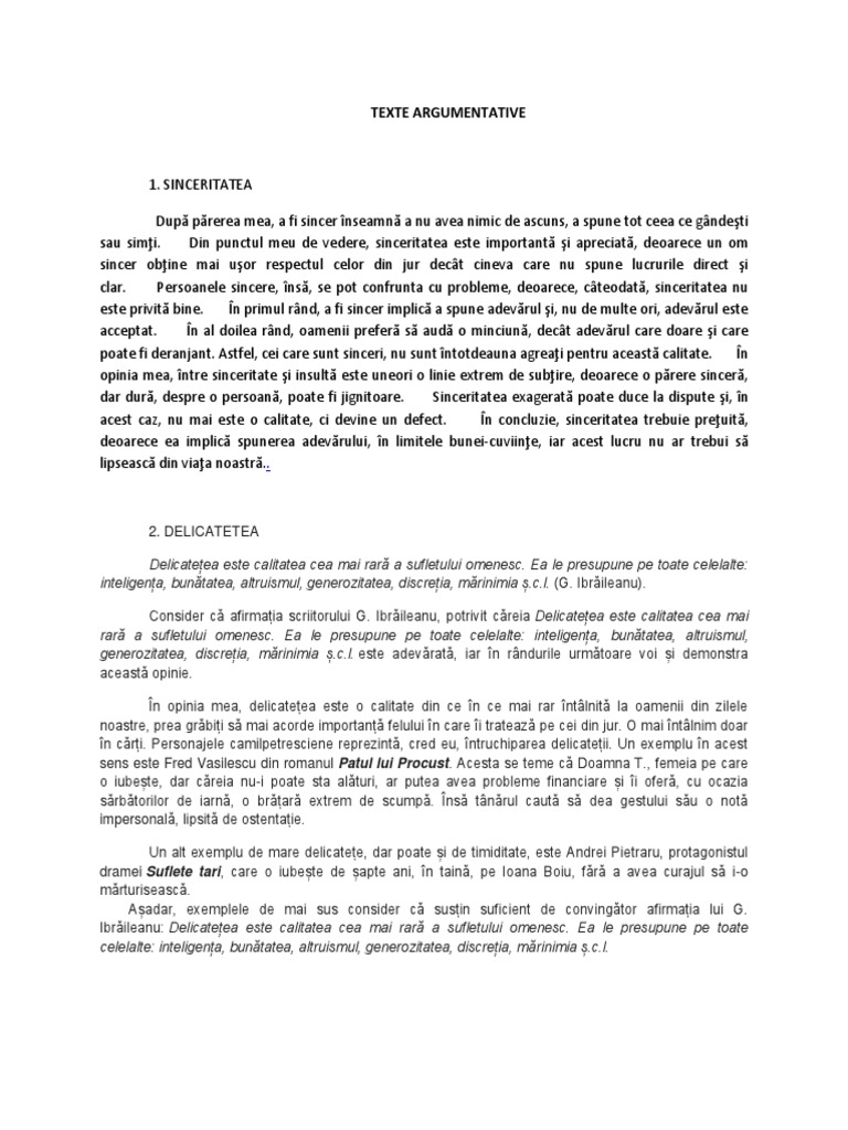 Text argumentativ despre generozitate. Text argumentativ de 150 300 cuvinte despre modul in care generozitatea ca atitudine morala completează profilul interior al unui tânăr 2980853. Să l înveţi pe cel mic ca atunci cînd dăruieşte să nu judece să nu pună etichete să nu acuze. De abia generozitatea ca act gratuit de bunăvoință față de un semen în nevoie ne scoate din regnul animal și ne dă o idee despre natura adevărată a omului. Modul in care familia te influenteaza in alegerea unei profesii.