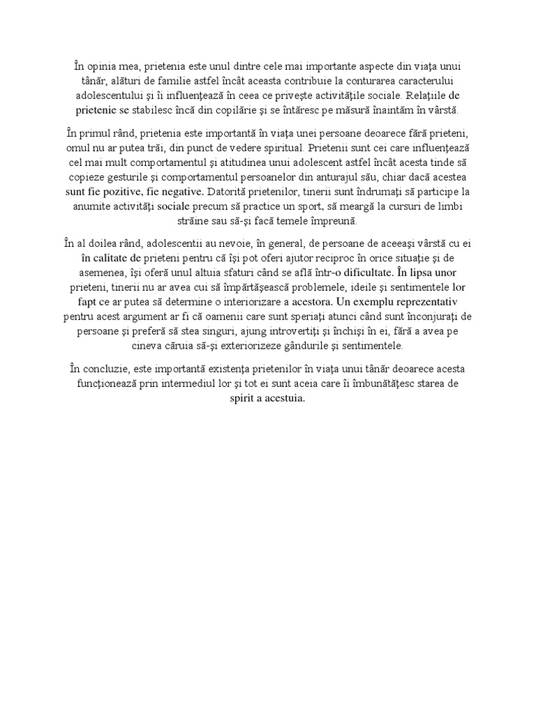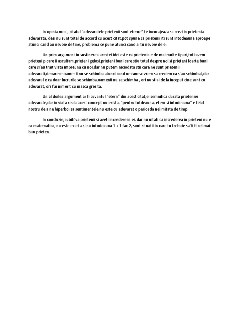 Text Argumentativ Despre Prietenie