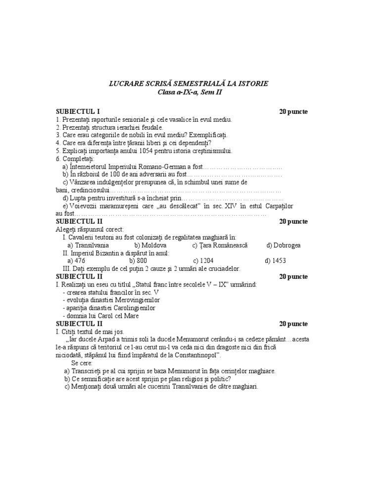 Test istorie clasa a ix a 1. Lucrare scris semestrial la istorie clasa a ix a sem ii. Academia edu is a platform for academics to share research papers. De la 1 la 20 din 13 total pagini 2.