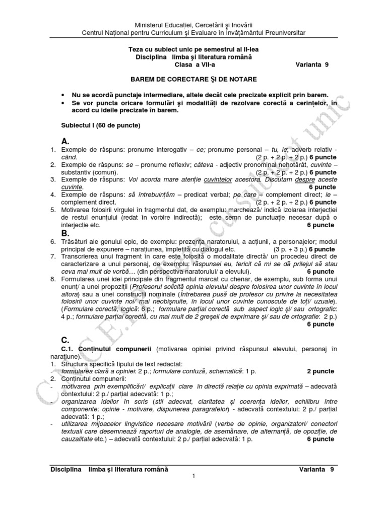 Semestrul 2 sursa edu ro 7 modele de teză pentru clasa a vii a cu rezolvări bareme de corectare subiecte teza 1. Programa limba si literatura romana clasa a ix a pentru scoala de arte si meserii sam. Limba și literatura română 2. De la 1 la 20 din 14 total pagini 2.