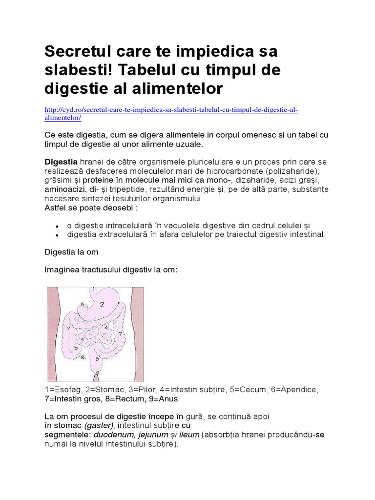 Timpul De Digestie Al Alimentelor Tabel
