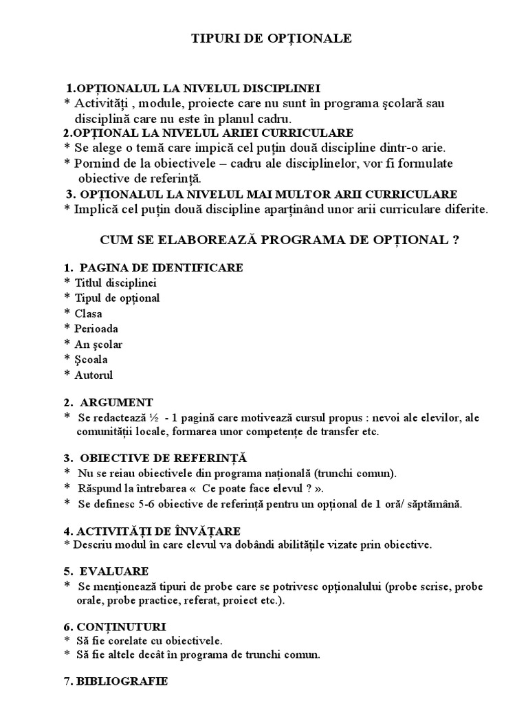 Tipuri de optionale gimnaziu. Tipuri de optionale stimati colegi revin cu informatiile despre tipurile de optionale. 5097 09 09 2009 iar suportul de curs și fișele de lectură exercițiile de înțelegerea a textului și itemii vizează metode activ participative menite să stimuleze creativitatea și. Alegerea denumirii titlului disciplinei opționale 2. Stabilirea tipului de opțional tipurile de opţional la liceu sunt prevăzute în omec nr.