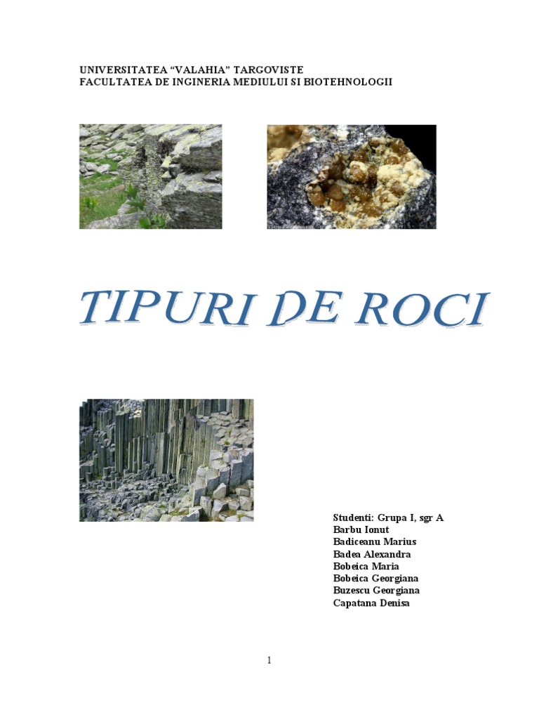 Tipuri de roci din punct de vedere genetic rocile magmatice rocile metaforice rocile sedimentare. După cum ştim cu toţii românia ţara noastră minunată este situată în partea sud estică a continentului european având o suprafaţă destul de mare de 237 000 de km 2 care o plasează printre cele mai mari din europa românia se învecinează cu ungaria ucraina republica moldova bulgaria şi serbia având de a lungul a aproximativ 180 de km ieşire la marea neagră. Granitul bazaltul marmura ardezia sist argilos calcarul travertinul gresia. Roci de precipitare formate prin precipitare chimică în ape marine lacustre sau de izvoare calcar dolomit sare ghips etc.