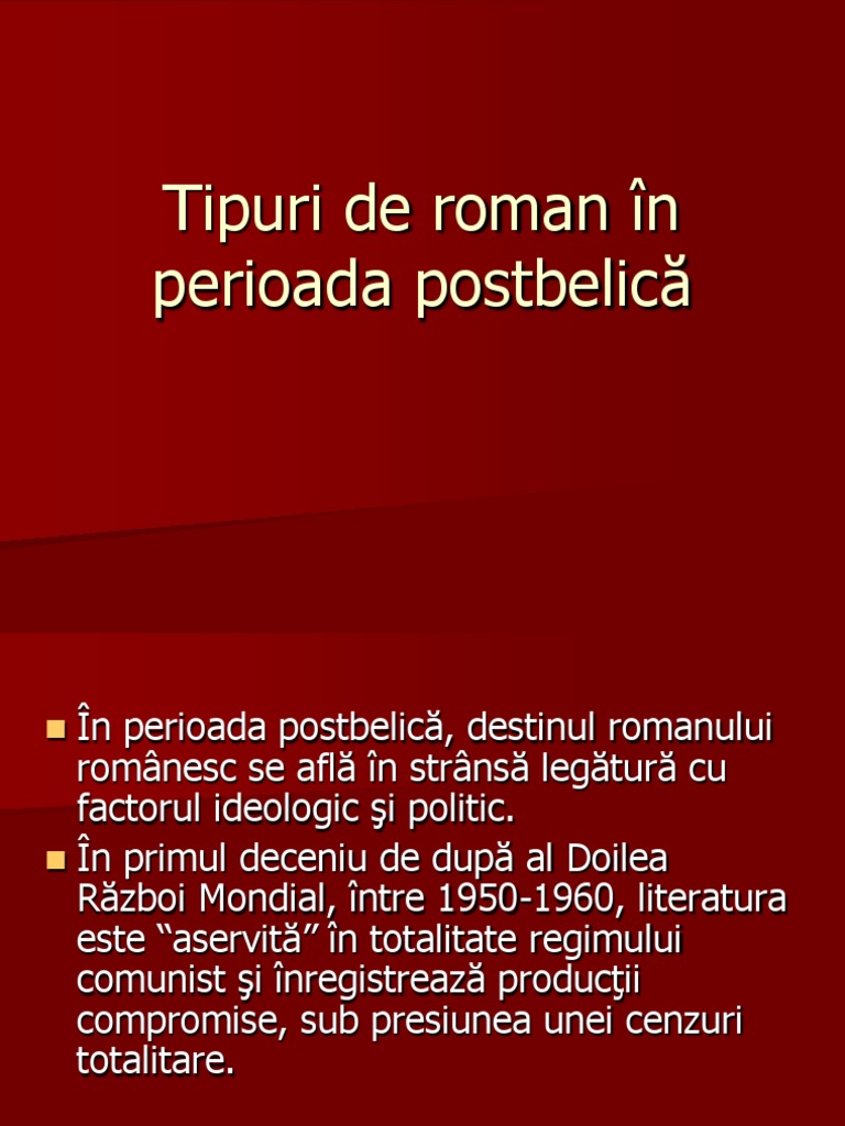 Tipuri De Roman In Perioada Postbelica