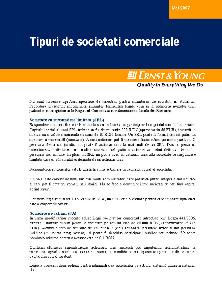 Cei care vor sa infiinteze o firma in romania pot alege intre mai multe tipuri de societati. Primul pas important pentru a infiinta o. Infiintari societati comerciale in romania pentru a infiinta o firma exista o intreaga procedura pe care trebuie sa o parcurgi iar ajutorul unui avocat in acest demers este extrem de important. Arhiva contine 1 fisier rtf de 7 pagini.