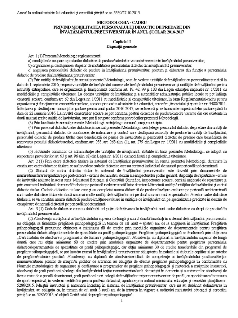 Potrivit ministerului acestia nu vor fi repartizati pe posturi didactice catedre in anul scolar 2016 2017. 1 iunie 2016 17 32. Metodologie titularizare 2016 a fost publicată metodologia cadru privind mobilitatea personalului didactic de predare din învățământul preuniversitar în anul școlar 2016 2017. Metodologie calendar subiecte rezolvari modele de subiecte variante rezolvate pentru diferite materii matematica limba romana informatica fizica biologie geografie istorie chimie.