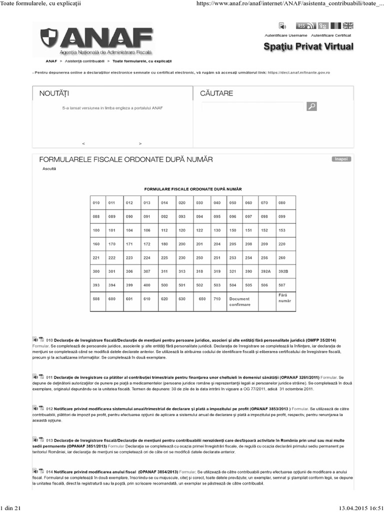 Toate Formularele Anaf 2017