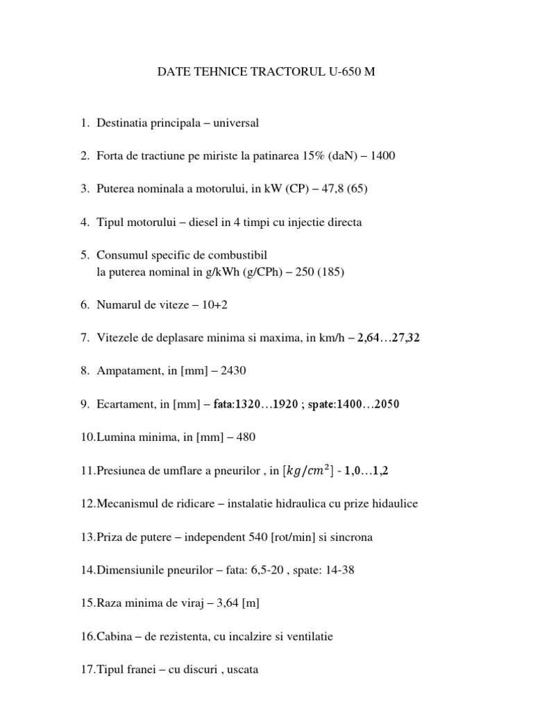 Tractor u650 specificatii tehnice. Constructia osiei din fata si a celei din spate permite reglarea encartamentelor rotilor in limite largi. Caracteristicile tehnice ale noului tractor universal 650. Linkuri date tehnice tractor u650. Desi pretul cuprului a crescut cu peste 45 romradiatoare s a.