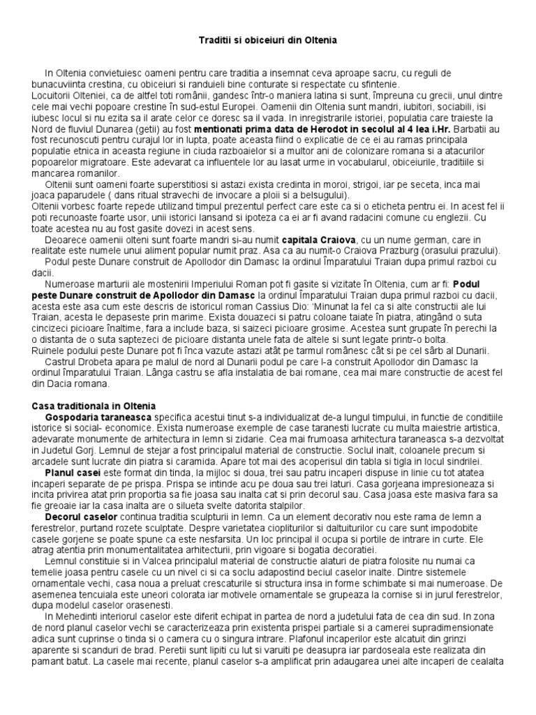 Traditii si obiceiuri de paste in oltenia referat. Podul peste dunare construit de apollodor din damasc la ordinul împaratului traian dupa primul razboi cu dacii acesta este asa cum este descris de istoricul roman cassius dio. De asemenea se spune ca cei care mănâncă miel n au voie sa dea oasele la câini ci trebuie să le îngroape sub un măr iar cojile de ouă se dau pe apă. Puteti gasi foarte multe referate accesand categoriile din partea dreapta despre traditii de paste in oltenia uita te mai jos si o sa gasesti cele mai relevante rezultate pentru cautarea traditii de paste in oltenia. Pastele presupune reîntoarcerea oamenilor la dumnezeu.