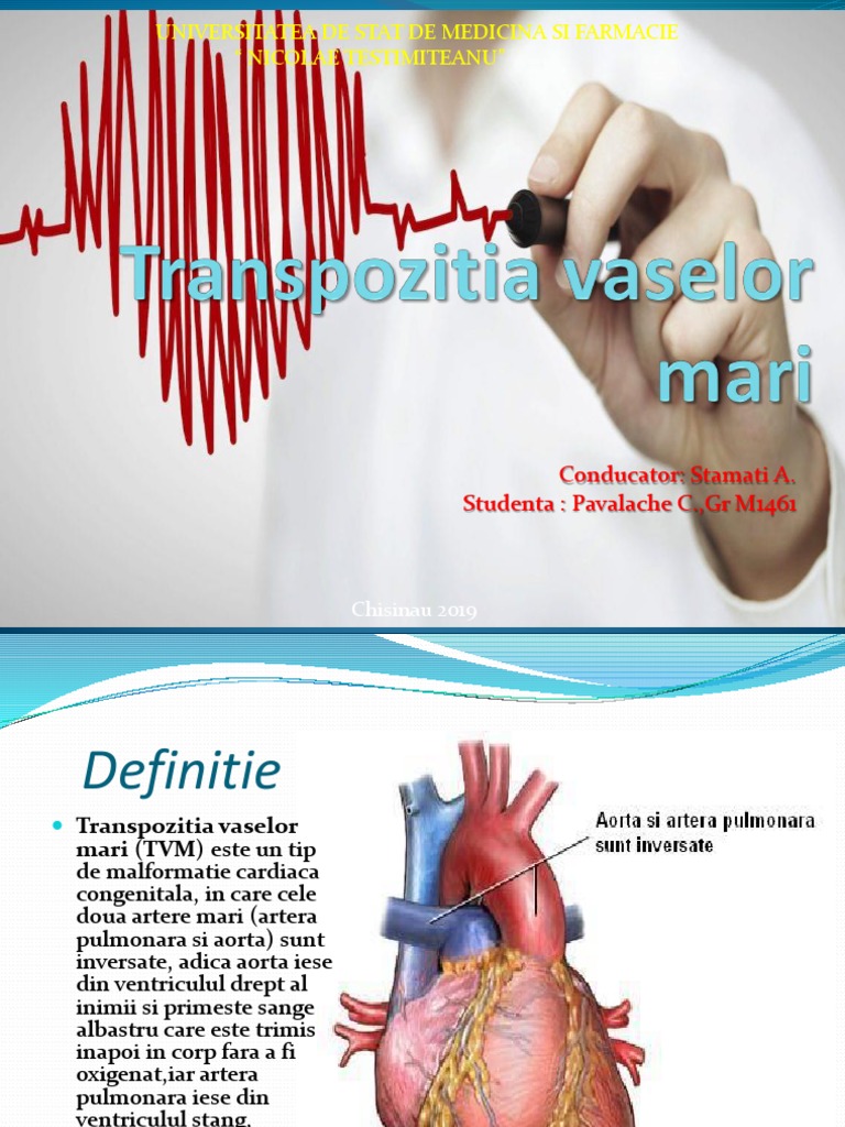 Transpozitie de vase mari malformatie congenitala in care aorta ia nastere in mod anormal din ventriculul drept iar artera pulmonara din ventriculul stang.