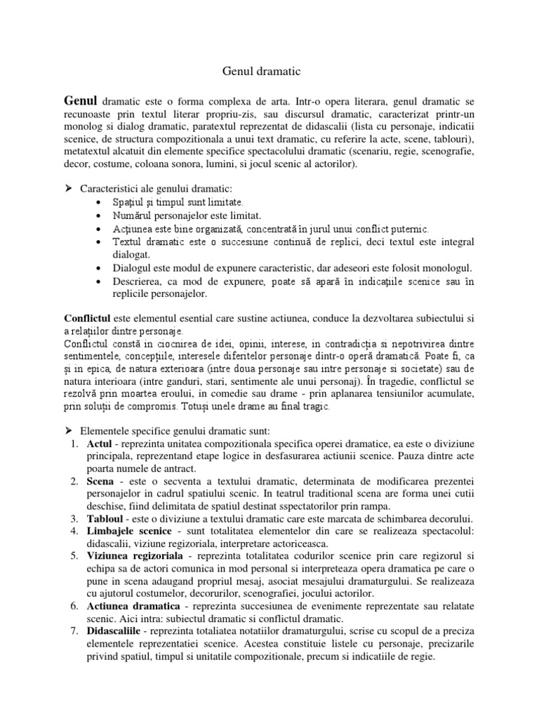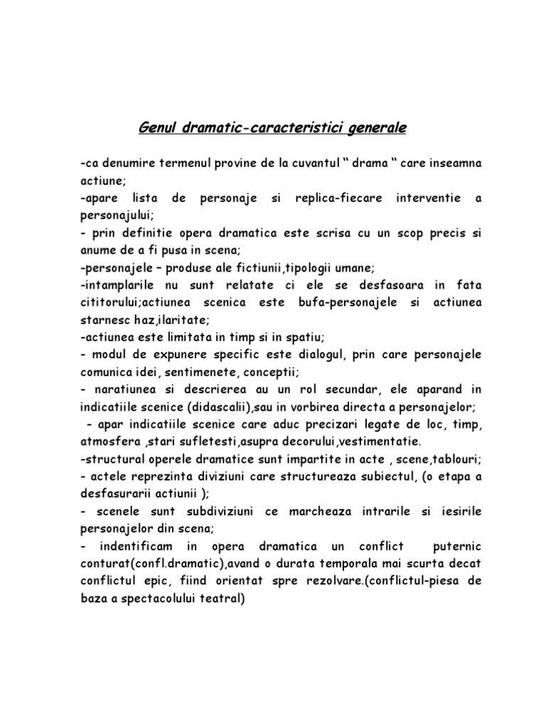 Trasaturi Ale Genului Dramatic