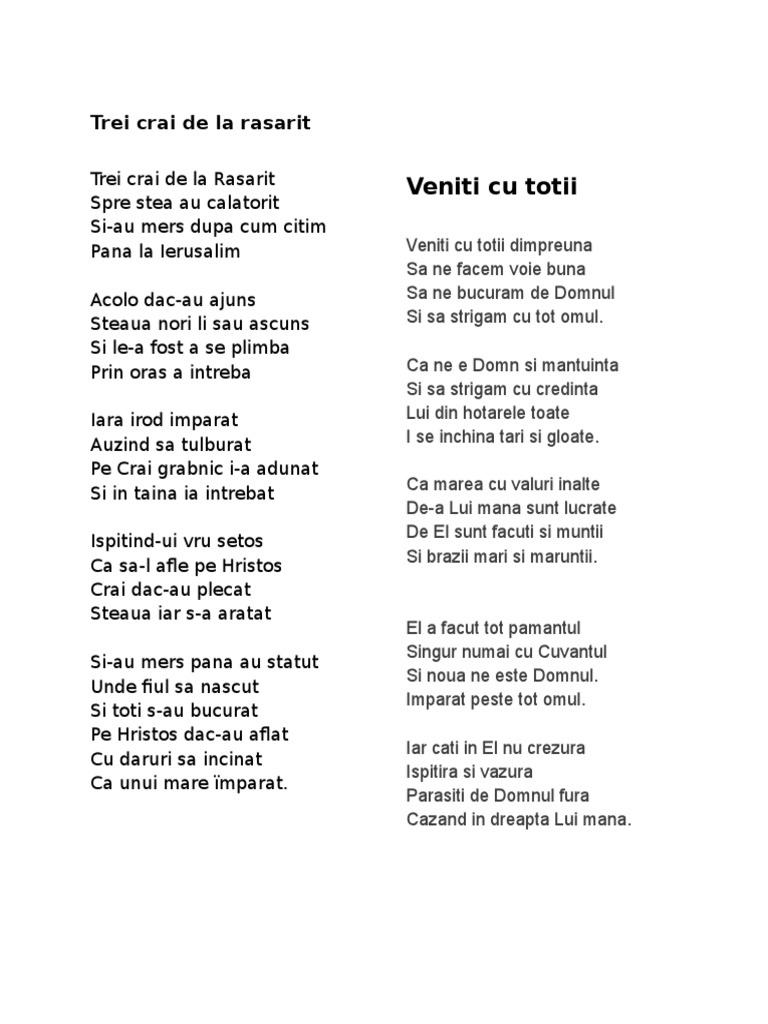 Un crai mare de curand. Iar irod imparat auzind s a tulburat. ö 4 2 ú. Trei crai de la rasarit spre stea au calatorit si au mers dupa cum citim pana la ierusalim acolo dac au ajuns steaua n nori li s a acuns si le a fost a se plimba prin oras a intreba.