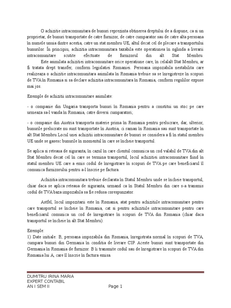 Pentru inceput este foarte important sa definim categoriile. 153 1 titlul vi tva din codul fiscal cu modificarile si completarile. 1 cu privire la plata tva aferenta achizitiilor intracomunitare de catre o persoana impozabila romana inregistrata in scopuri de tva pentru achizitii intracomunitare conform art. B in situatia in care autoturismul nu mai este nou dar furnizorul din italia aplica regimul special second hand specific vanzarilor de autoturisme de catre firme specializate in astfel de operatiuni revanzatori achizitia autoturismului nu este impozabila in romania caz in care valoarea achizitiei se raporteaza doar prin decontul de tva cod 300 la randul 28 achizitii de bunuri si.