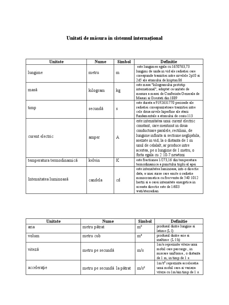 Unitati de masura in sistemul international. în sistemul internațional unitatea de măsură pentru căldură este 1j joule dar se păstrează și caloria astfel 1 cal 4 1855j. Mărimi fizice şi unităţi de măsură fundamentale sistemul internaţional si conţine şapte unităţi fundamentale. Metrul kilogramul secunda amperul kelvinul molul şi candela. L unitatea de.