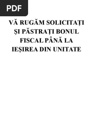 Bonul fiscal este documentul eliberat de casa de marcat. 0 copie extras onrc cu punctul de lucru unde este cazul aboneaza te la noul nostru canal de youtube click aici dupa care dai click pe subscribe si apoi pe clopotel. Au obligatia de a avea afisat la vedere textul va rugam solicitati si pastrati bonul fiscal. Luiza mai 24 2015 at 11 30.