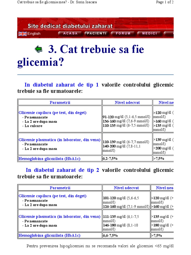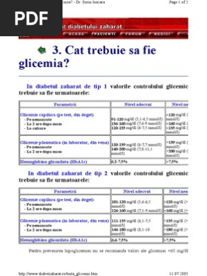 Pentru cei cu varsta de pana la 6 ani glicemia a jeun trebuie sa fie intre 100 mg dl 5 5 mmol l si 180 mg dl 10 mmol l iar glicemia inainte de somn intre 110 mg dl 6 1 mmol l si 200 mg dl 11 1 mmol l iar pentru copiii cu varsta intre 6 12 ani glicemia a jeun trebuie sa se incadreze intre 90. 0 raspunde raspunde la comentariul postat de dr. însă dacă îți faci mai multe analize și vrei să știi de exemplu și nivelul colesterolului atunci sângele va fi luat din venă nu din deget. Glicemie ghid complet.