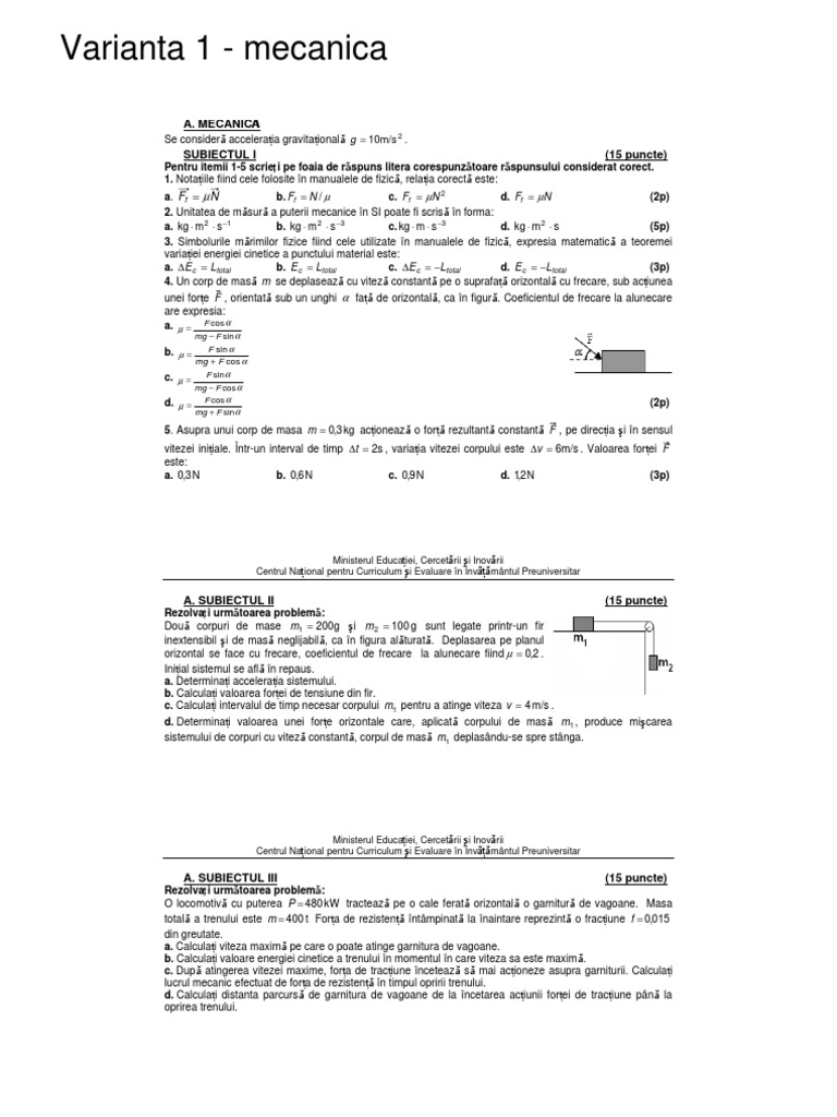 Subiecte bac fizica 2009 mecanica 100 de variante by zeina483 in types school work fizica dan 2009.