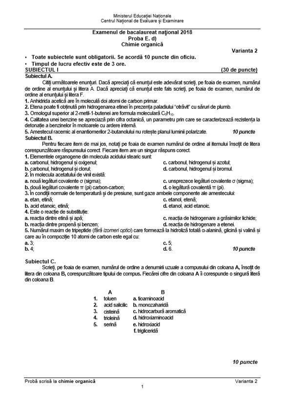 Variante bac chimie anorganica. Varianta 100 2009 chimie anorganica. Noi modele edu ro teste de antrenament bac 2020 clasa a 12 a sursa edu ro rocnee eu subiecte și bareme în format pdf. Varianta 9 test de antrenament setul 2 bacalaureat chimie profil chimie anorganica 2020. Testele de antrenament din 2020 rămân cea mai bună metodă pentru pregătirea examenului de bac 2021.