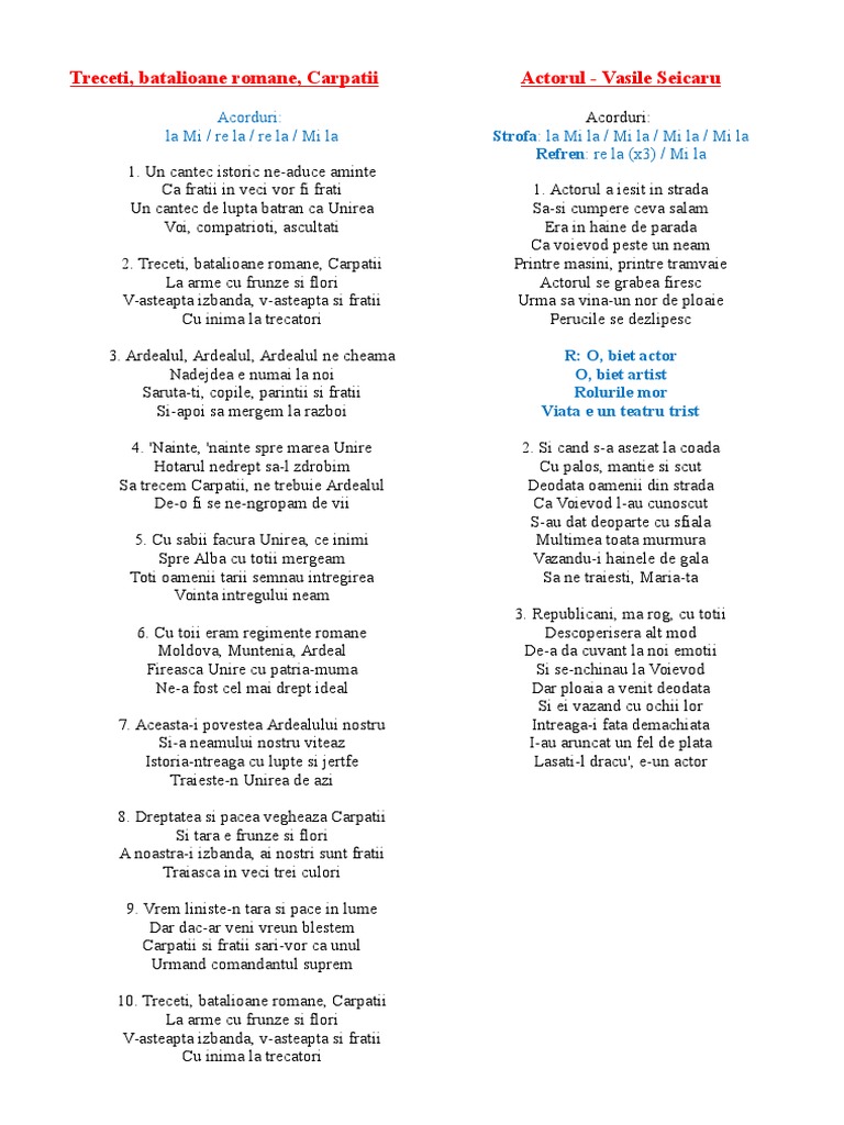 Versuri treceți batalioane române carpații de vasile șeicaru. Em un cântec istoric ne aduce aminte am em că frații în veci vor fi frați am em un cântec de luptă bătrân ca unirea b7 em e voi compatrioți asculta a a ați am em un cântec de luptă bătrân ca unirea b7 em voi compatrioți ascultați treceți batalioane române carpații la arme cu frunze și flori v așteaptă izbânda v așteaptă și frații cu inima la trecător ardealul. A doua zi am. Un cintec istoric ne aduce aminte ca fratii in veci vor fi frati un cintec.