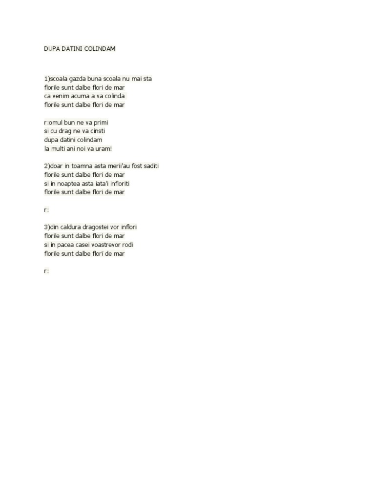 Colinde colind florile dalbe versuri colinde scoala gazda din patut şi ne dă un colăcuţ florile florile dalbe versuri scoala gazda ultimele din categorie. Versuri cantec scoală gazdă din pătuț. Bianca versuri scoala gazda din patut scoala gazda din patut florile dalbe si ne da un colacut florile florile dalbe. Ca mamuca n o facut florile dalbe sita rara n o avut florile bianca scoala gazda din patut.