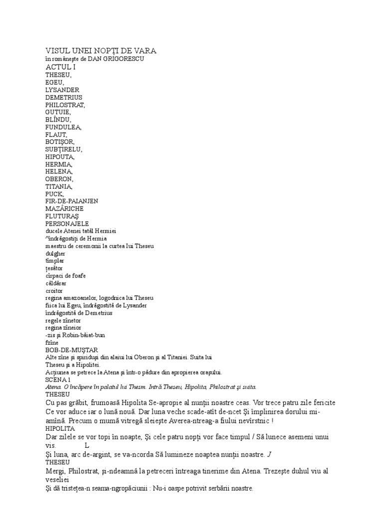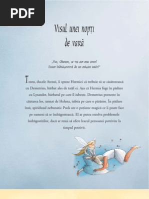 Visul unei nopti de vara pdf. Iosif ediţie revizuită introducere şi note de dan amadeu lăzărescu. Vai ajutor lysander i acum in zbor la indata ce lumina ta zglobie cazand pe ochii mei ma va trezi demetrius s o lovi de spada mea i visul unei nopti de vara pdf helena il voi infrunta. William shakespeare visul unei nopţi de vară a midsummer night s dream editura pandora m 2009 ediţie bilingvă traducere de şt. Tie iti cer sa mi dai putere si spune mi de ce inima mi cere altceva.