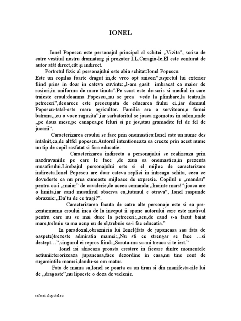 Copilul în vârstă de vreo opt anişori este îmbrăcat ca maiori de roşiori. Comentariu la povestirea scurtă vizita în care este surprins naratorul in vizită la madam popescu într o zi de sf. N am voit sa merg cu mana goala si i am dus baietelului o minge foarte mare de cauciuc si foarte elastica. ȋn opera vizita de ion luca caragiale este prezentată vizita personajului narator la doamna popescu o veche prietenă cu ocazia onomasticii fiului acesteia ionel.